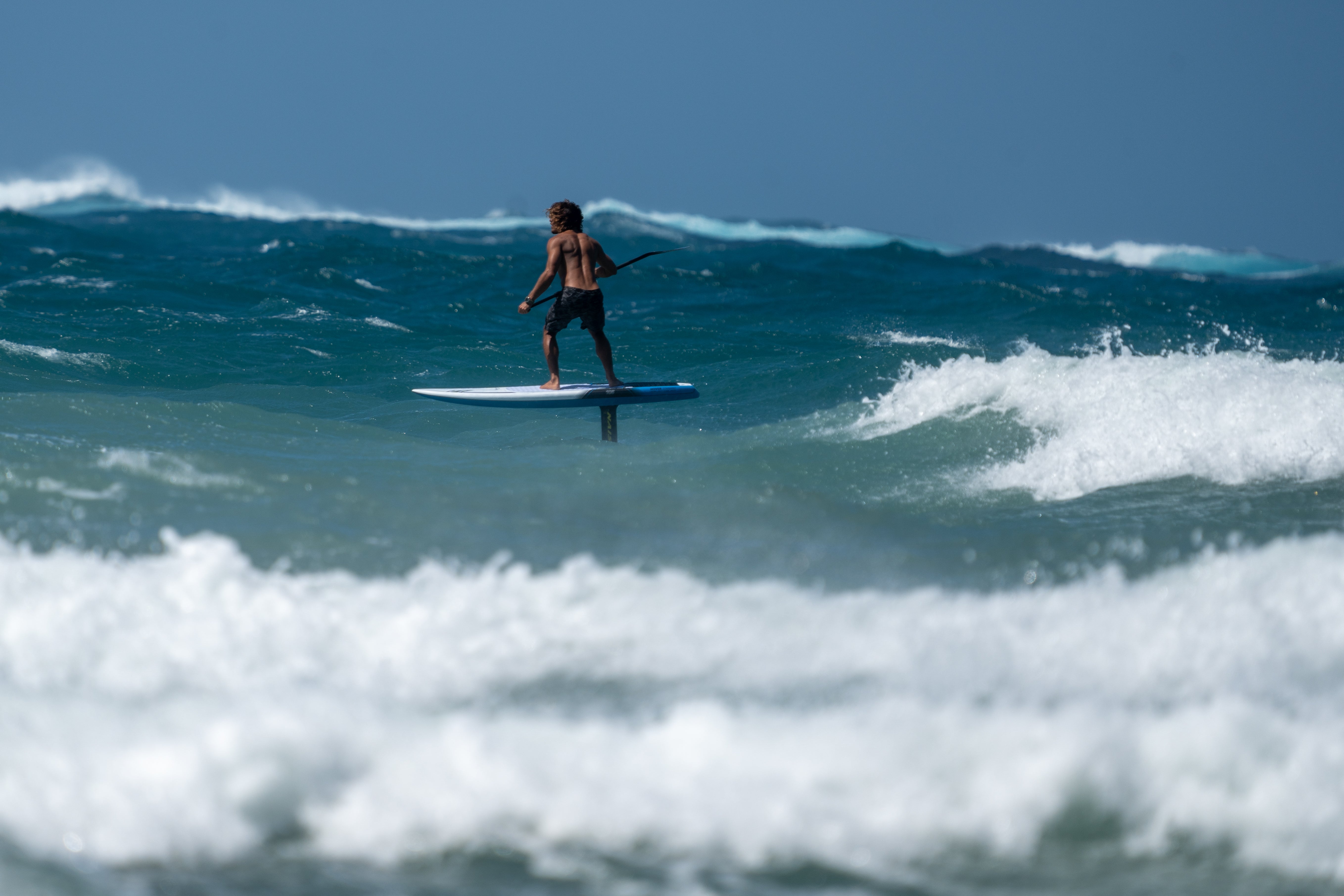 Maintain Balance and Control: As the board lifts onto the foil, focus on maintaining balance and control by adjusting your weight distribution and making subtle corrections with your paddle strokes. Keep your knees slightly bent and your body relaxed to absorb any changes in the water's surface.