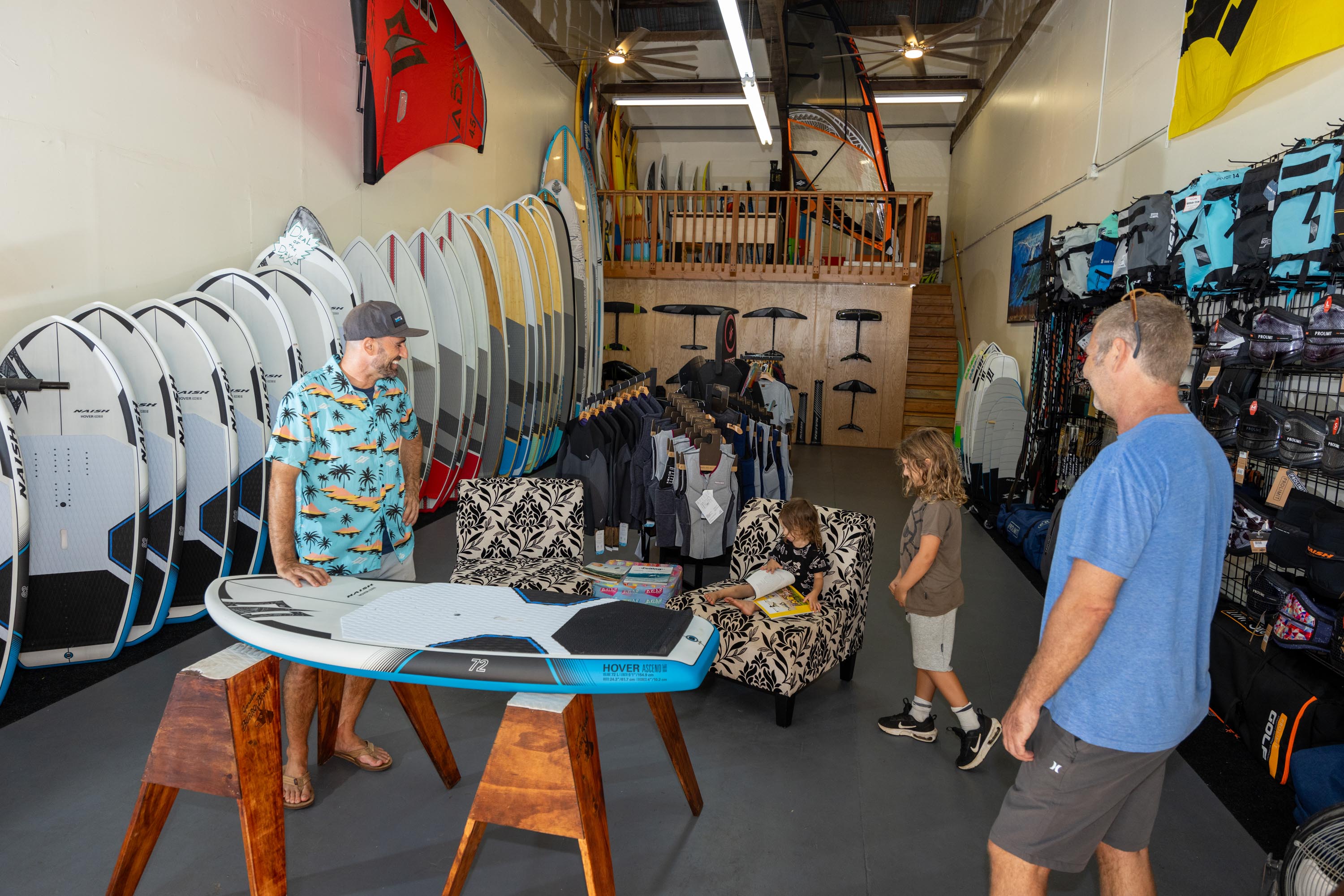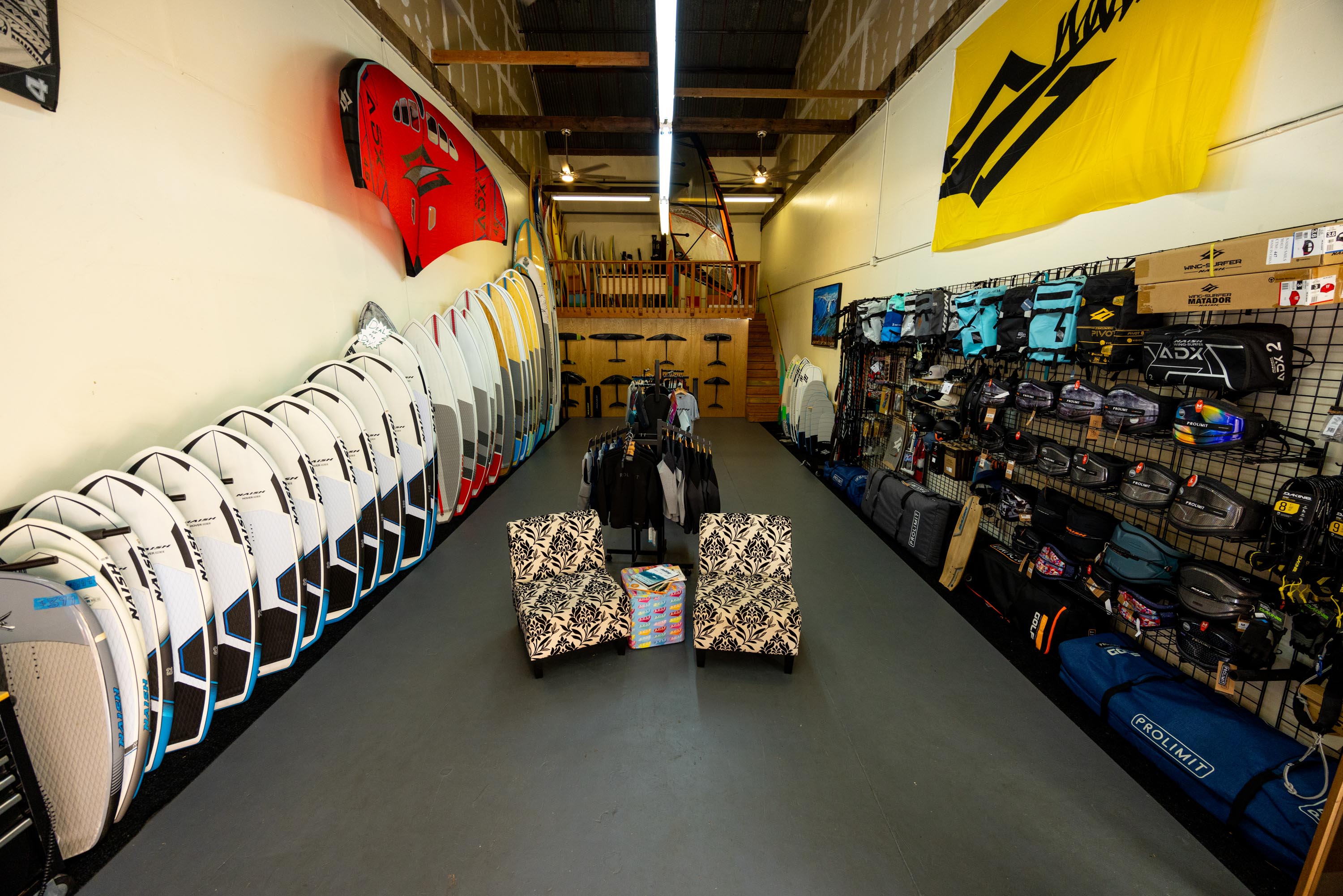 Adding to its appeal, the Naish R&D headquarters is situated directly above the shop. This is where cutting-edge designs and innovations for the sport come to life, making the Pro Center a unique hub for both riders and enthusiasts.