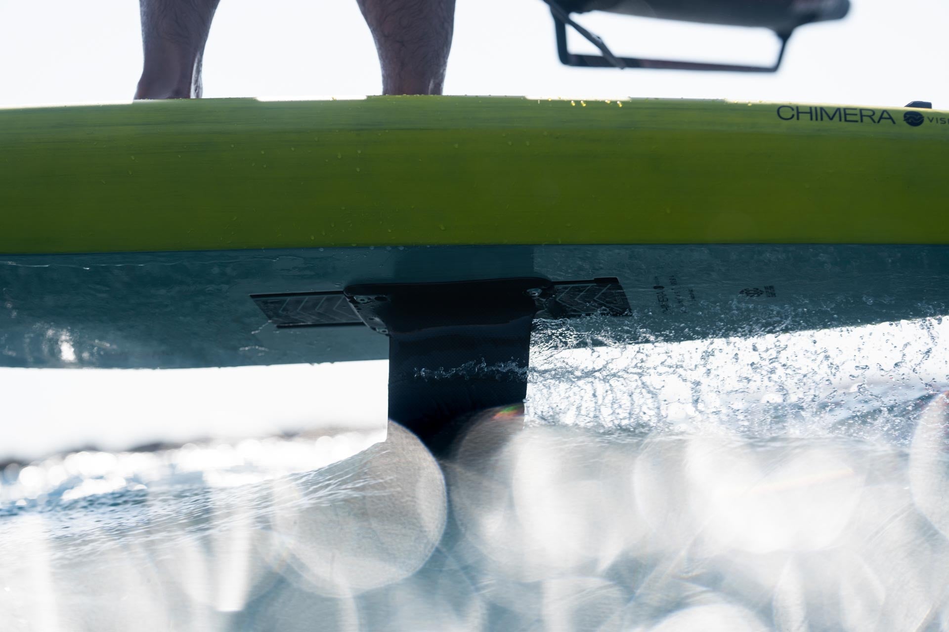 Crafted with an advanced shell composite and no foam core, the Nvision construction cuts weight and boosts performance across the board. More float equals quicker lift. Refined volume placement improves pump return. A tuned deck angle keeps it super balanced through turns, touchdowns and high-speed glides. The centered foil box and narrow outline lock in rail-to-rail control for insanely reactive, surf-style lines. Same Chimera shape, hyper focused on elite-level execution.